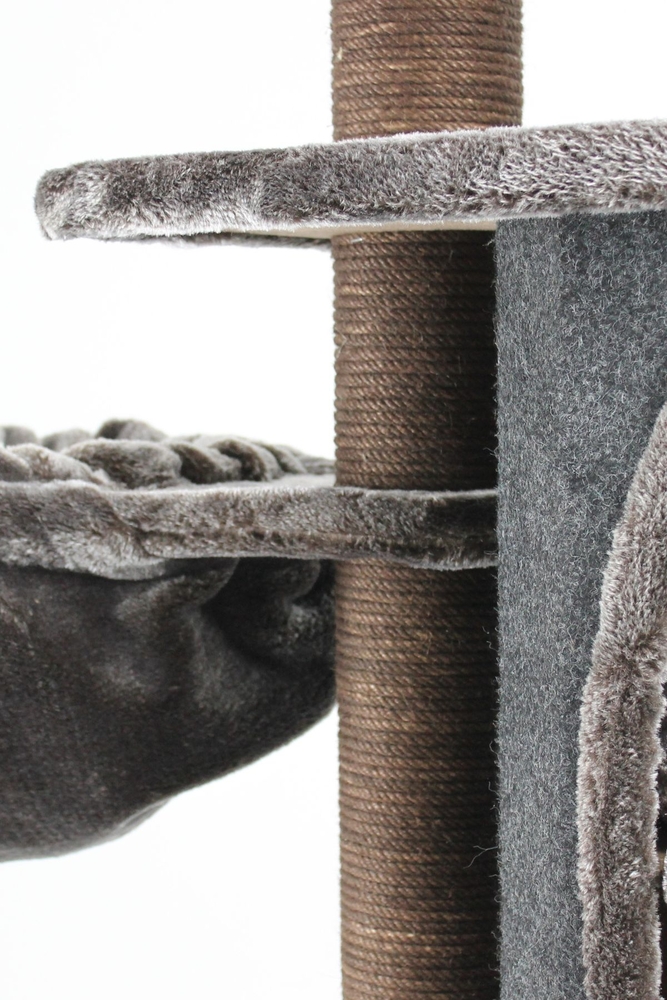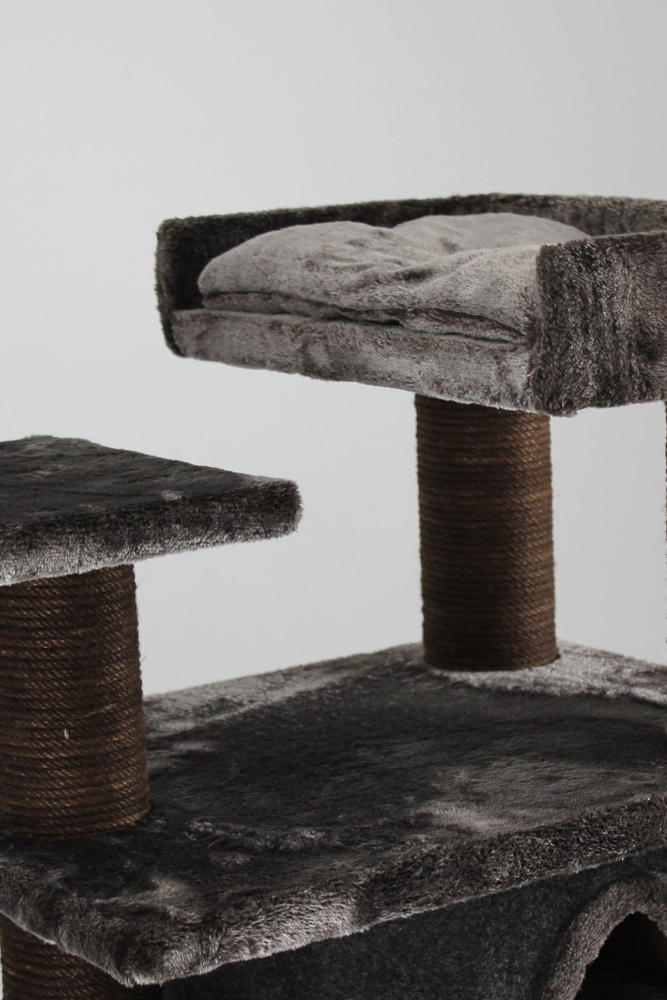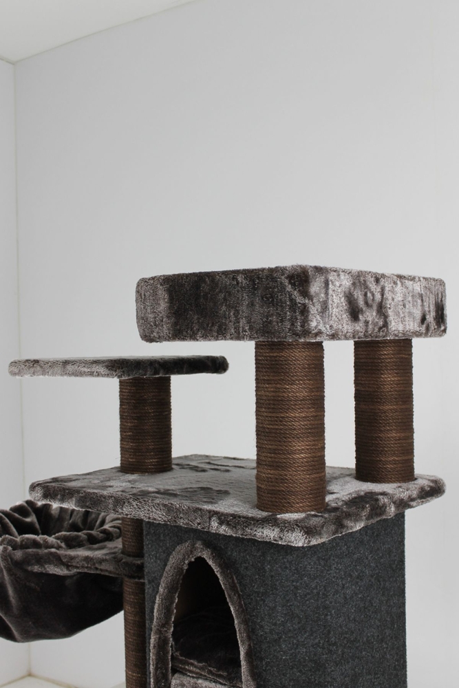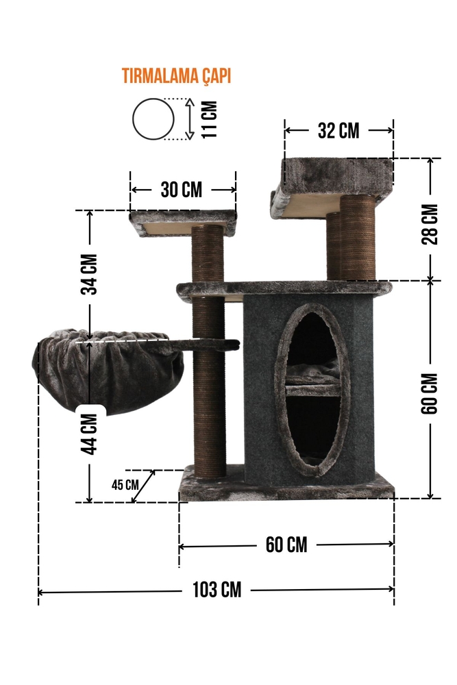 - Tırmalama direklerinde kullanılan 6mm doğal jüt halat, masuralara her noktadan yapıştırılarak sağlamlık en üst düzeye çıkarılmıştır. Tırmalama direklerinin alt ve üst kapaklarında MDF kullanılmaktadır.