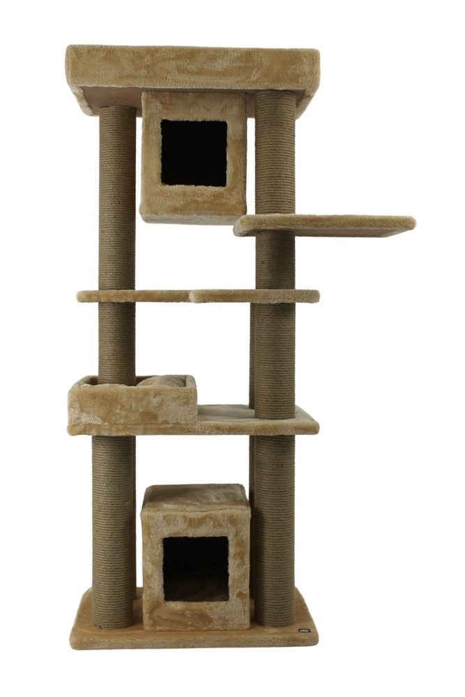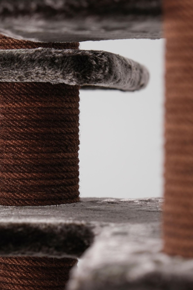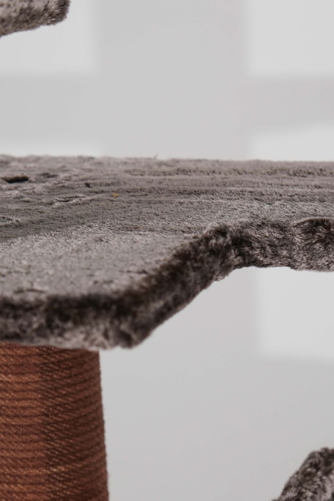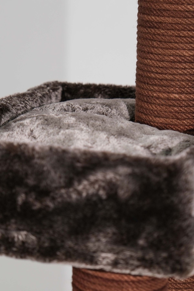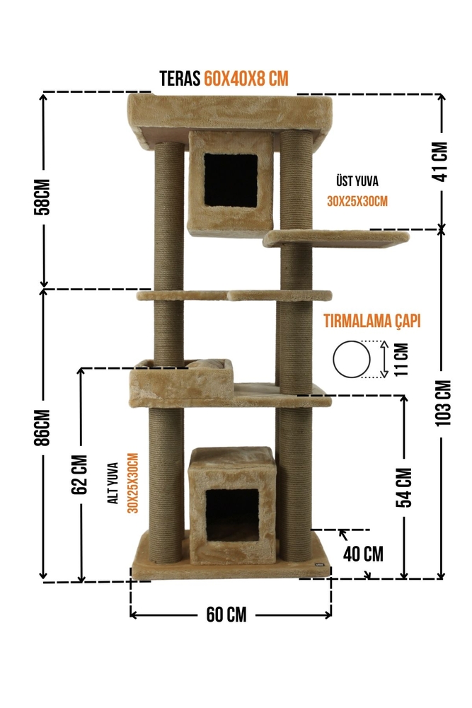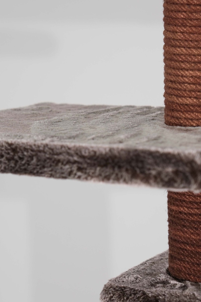 - Tırmalama direklerinde kullanılan 6mm doğal jüt halat, masuralara her noktadan yapıştırılarak sağlamlık en üst düzeye çıkarılmıştır. Tırmalama direklerinin alt ve üst kapaklarında MDF kullanılmaktadır.