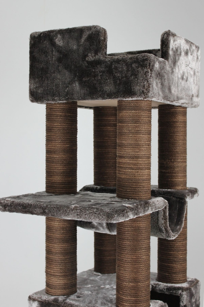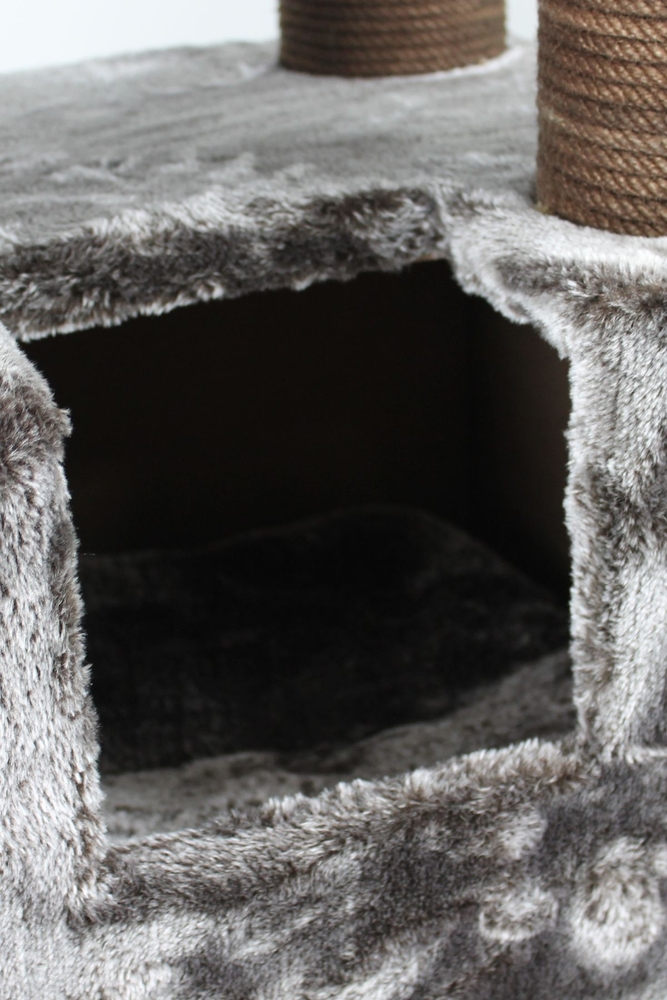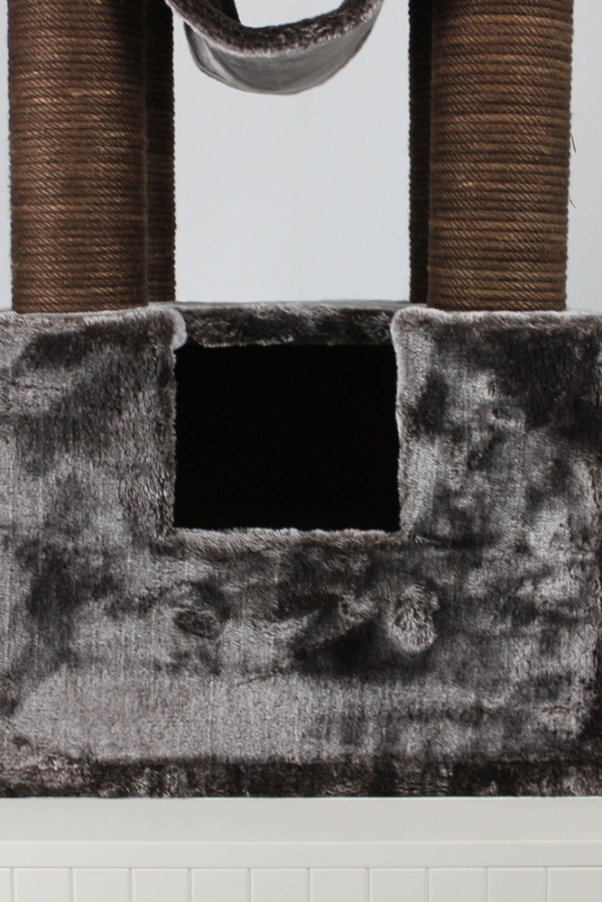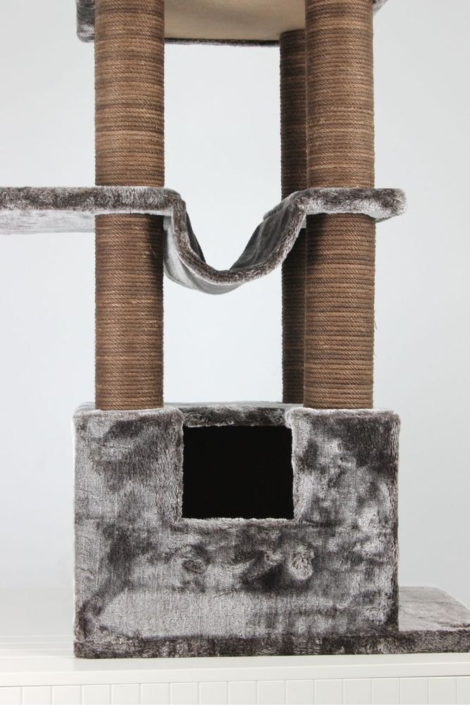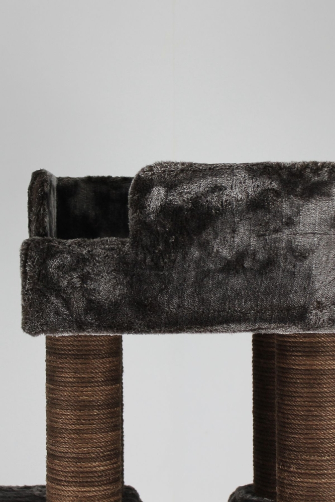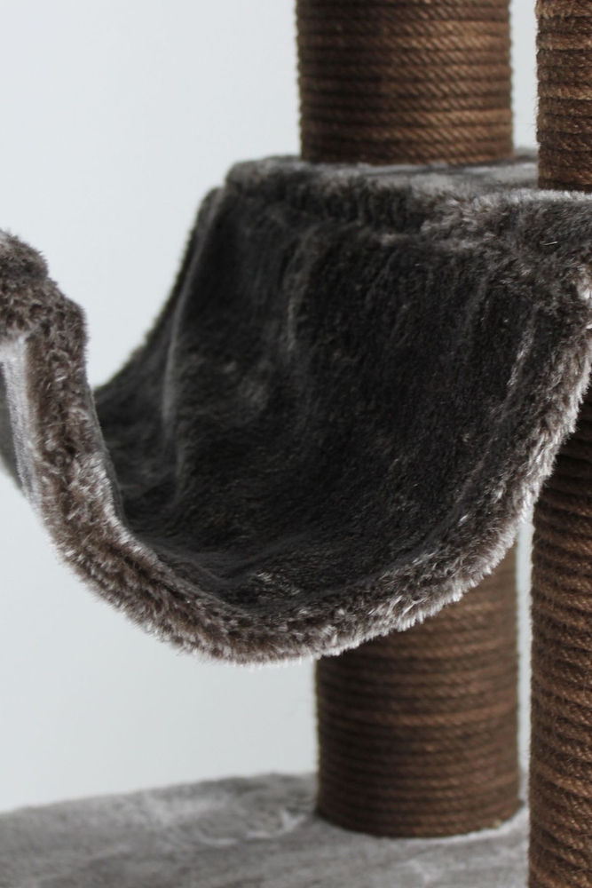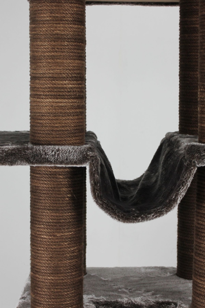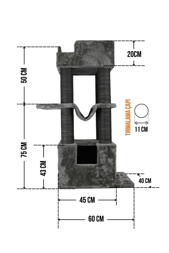 - Tırmalama direklerinde kullanılan 6mm doğal jüt halat, masuralara her noktadan yapıştırılarak sağlamlık en üst düzeye çıkarılmıştır. Tırmalama direklerinin alt ve üst kapaklarında MDF kullanılmaktadır.