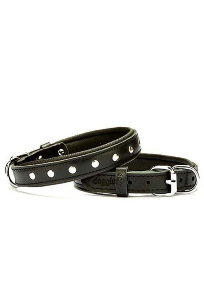 Doggie Comfort Deri Rivetli Siyah Köpek Boyun Tasması Medium 2.5x37-45 cm