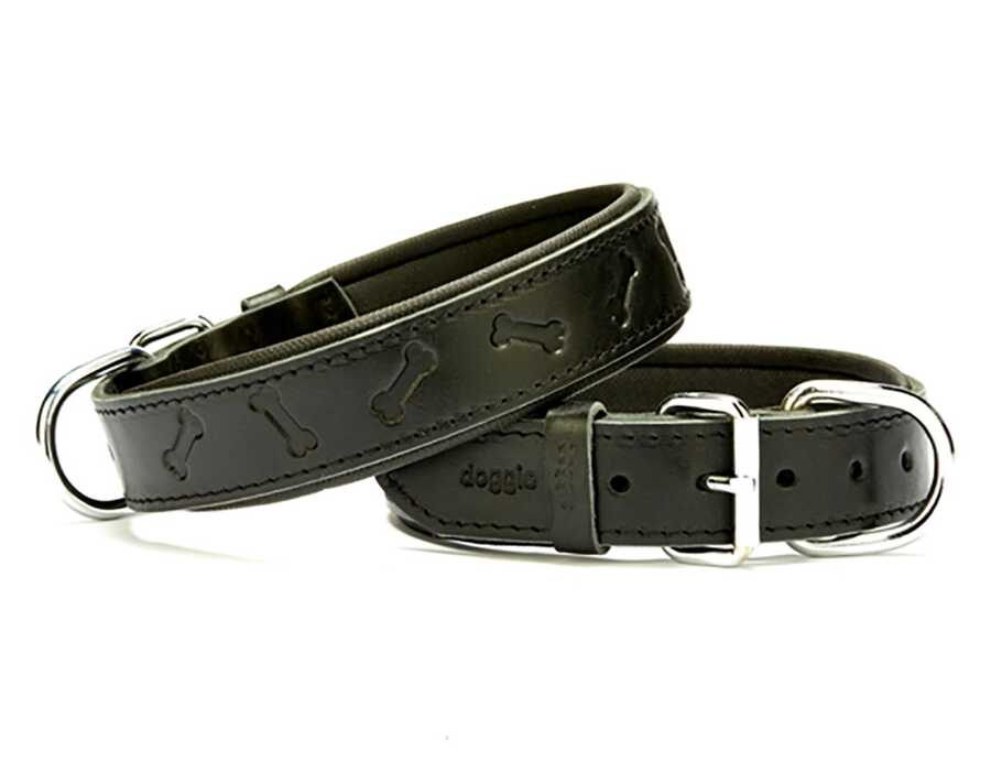 Doggie Konfor Deri Kemik Desenli Boyun Tasması 3,5X52-60Cm Siyah