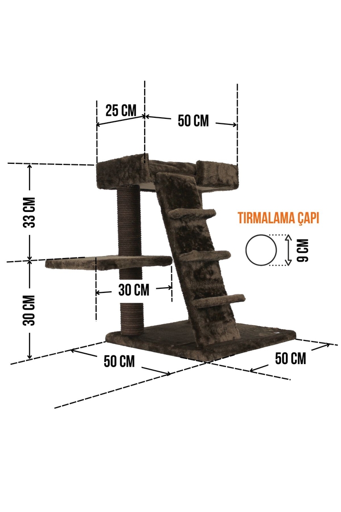 - Tırmalama direklerinde kullanılan 6mm doğal jüt halat, masuralara her noktadan yapıştırılarak sağlamlık en üst düzeye çıkarılmıştır. Tırmalama direklerinin alt ve üst kapaklarında MDF kullanılmaktadır.