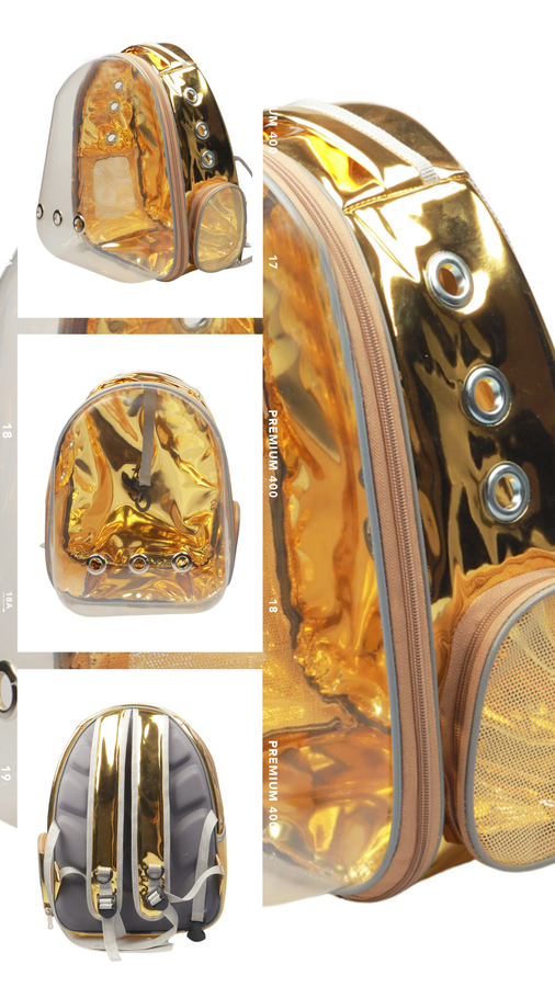 Miapet Aynalı Şeffaf Astronot Kedi Köpek Taşıma Çantası 42X22X33 Cm Altın-Gri