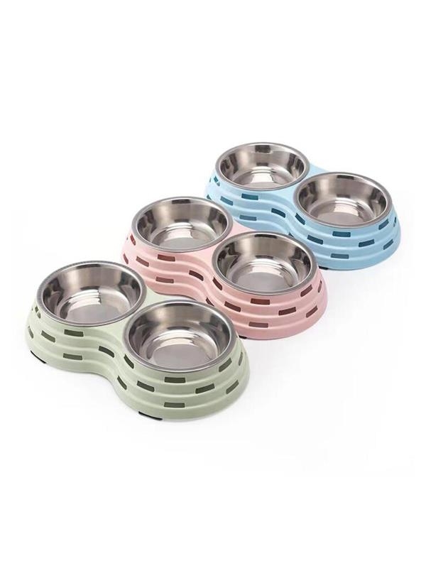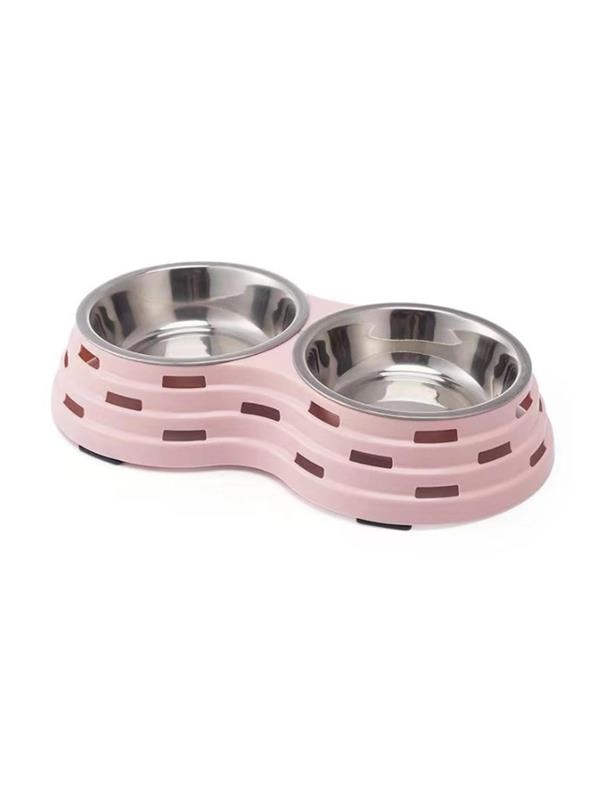 Glipet Kesikli Çelik Hazneli İkili Mama ve Su Kabı 41.5x22x7 Cm Büyük Boy Pembe
