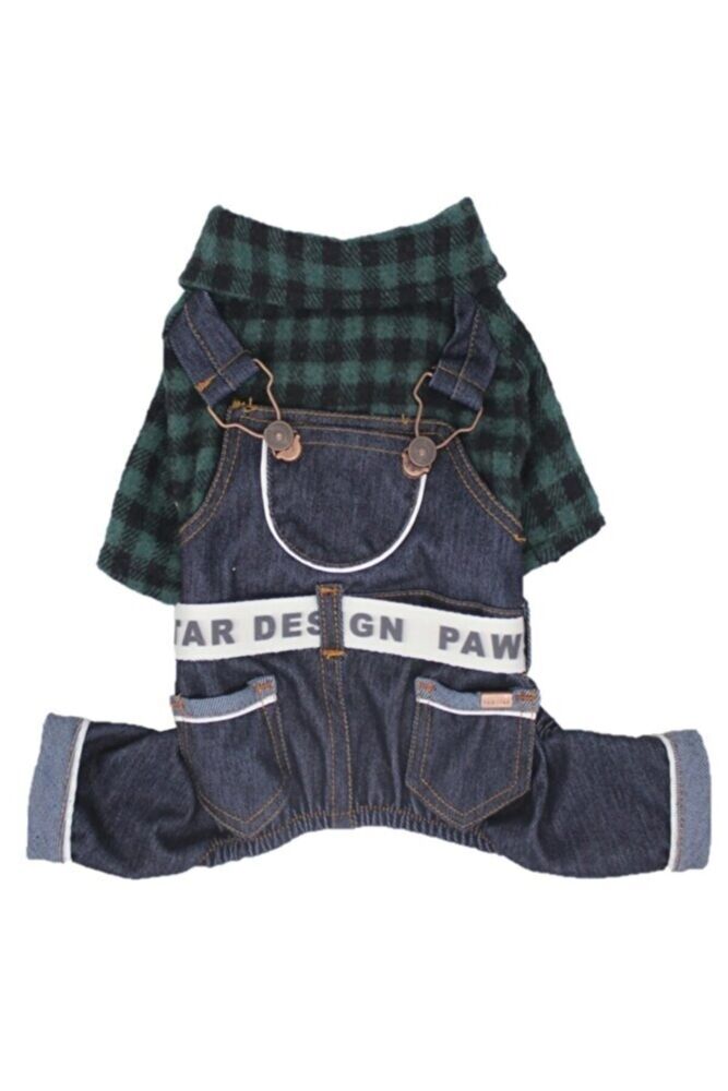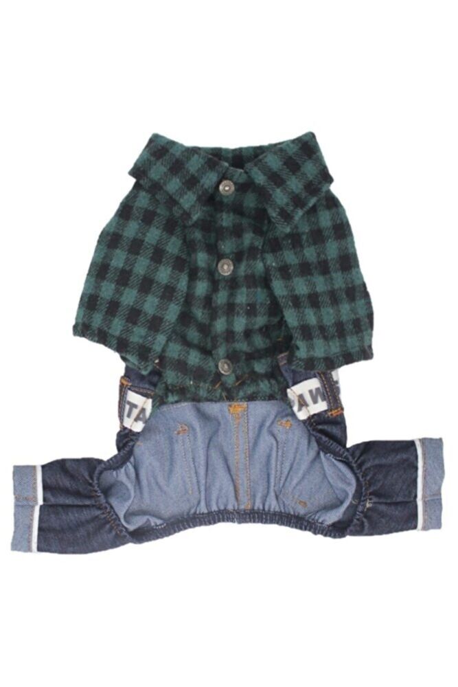 Haki Ekose Bahçıvan Tulum Kedi Köpek Tulumu Kedi Köpek Kıyafeti - XL