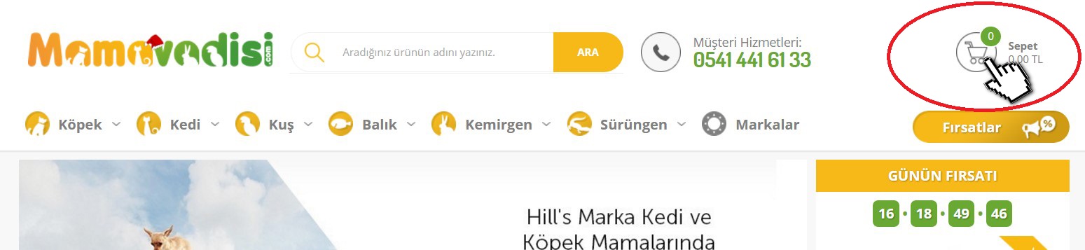 2-) Satın almak istediğiniz ürünleri sepete attıktan sonra resimde gösterilen şekilde sepet bölümüne tıklayarak sepetinize gidin.