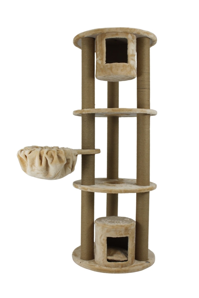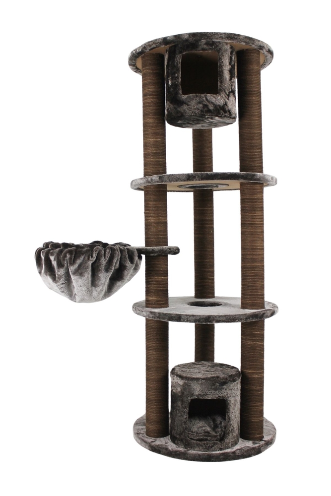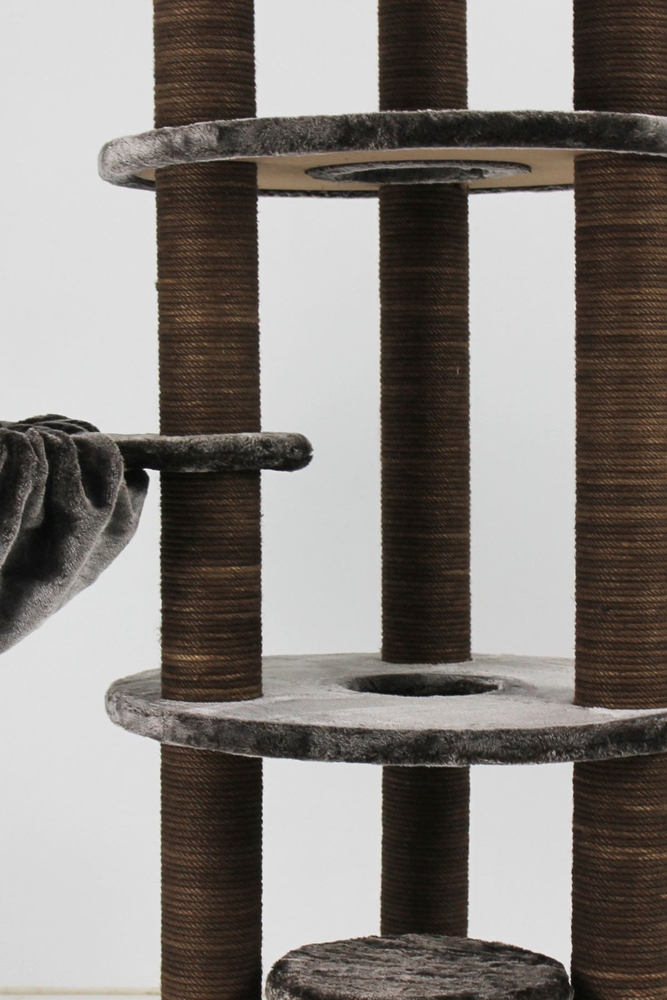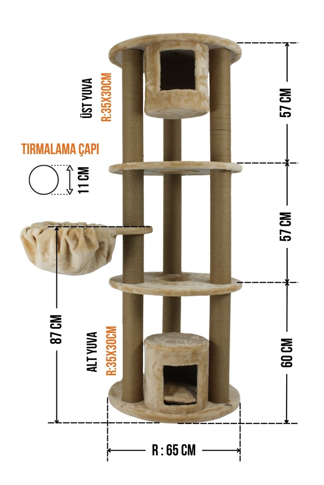 - Tırmalama direklerinde kullanılan 6mm doğal jüt halat, masuralara her noktadan yapıştırılarak sağlamlık en üst düzeye çıkarılmıştır. Tırmalama direklerinin alt ve üst kapaklarında MDF kullanılmaktadır.