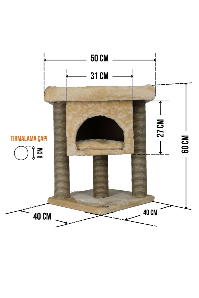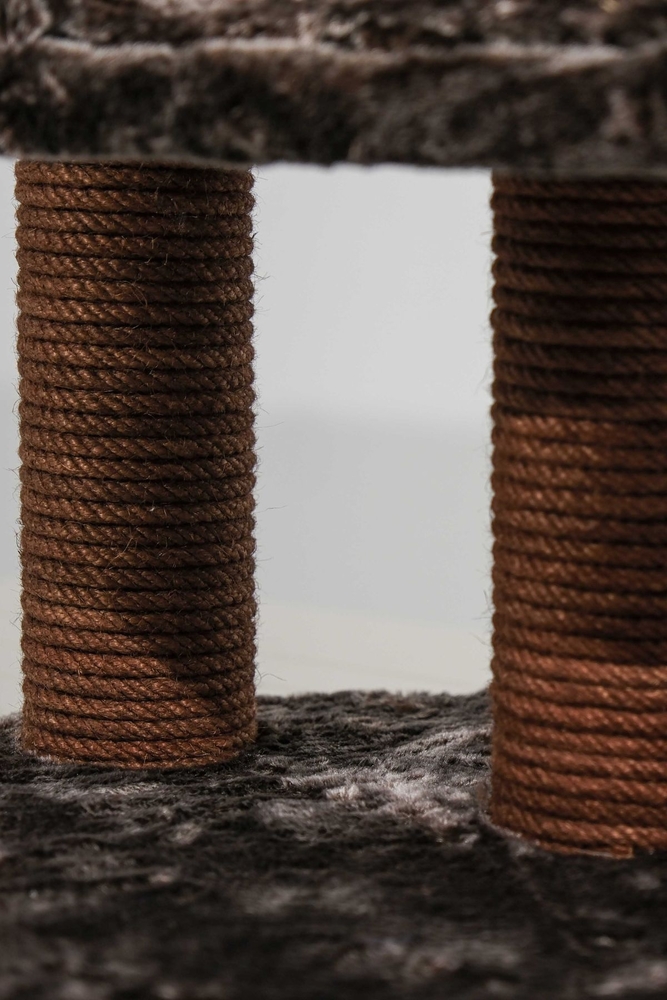 - Tırmalama direklerinde kullanılan 6mm doğal jüt halat, masuralara her noktadan yapıştırılarak sağlamlık en üst düzeye çıkarılmıştır. Tırmalama direklerinin alt ve üst kapaklarında MDF kullanılmaktadır.