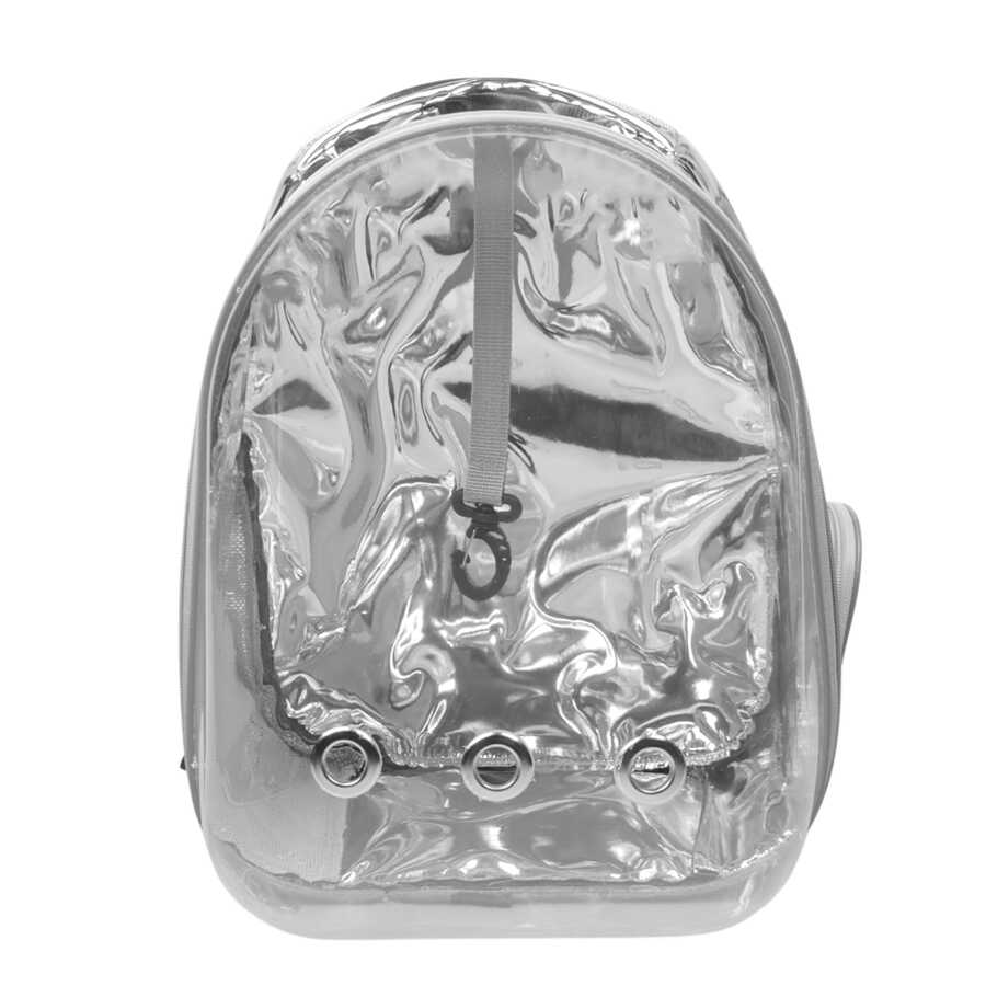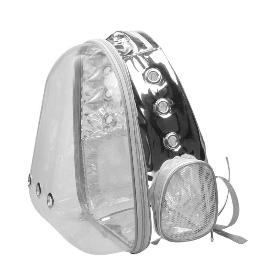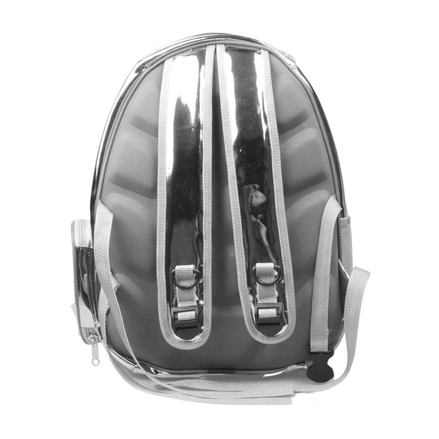 Miapet Aynalı Şeffaf Astronot Kedi Köpek Taşıma Çantası 42x22x33 Cm Gümüş-Gri