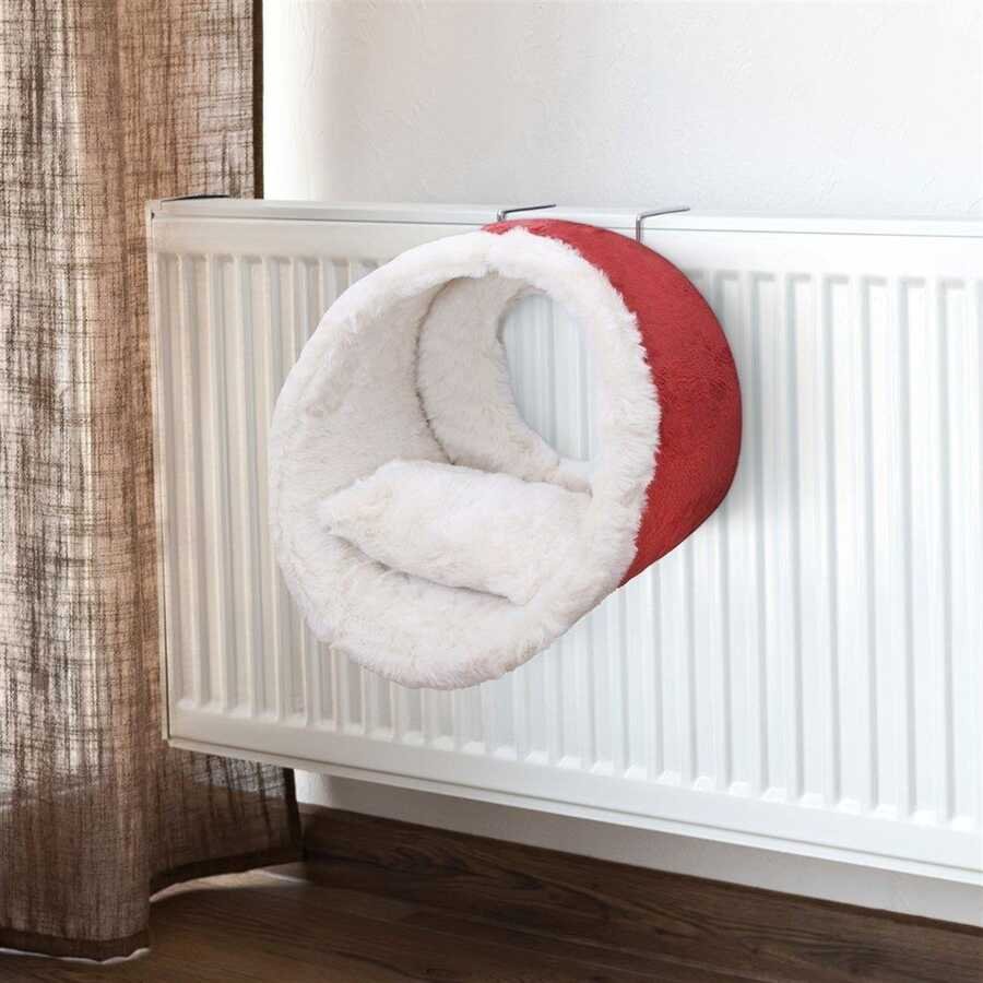 Miapet Kalorifer Üstü Askılı Yastıklı Peluş Kedi Yatağı 42 cm Kiremit-Beyaz