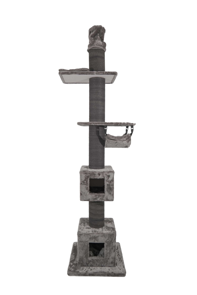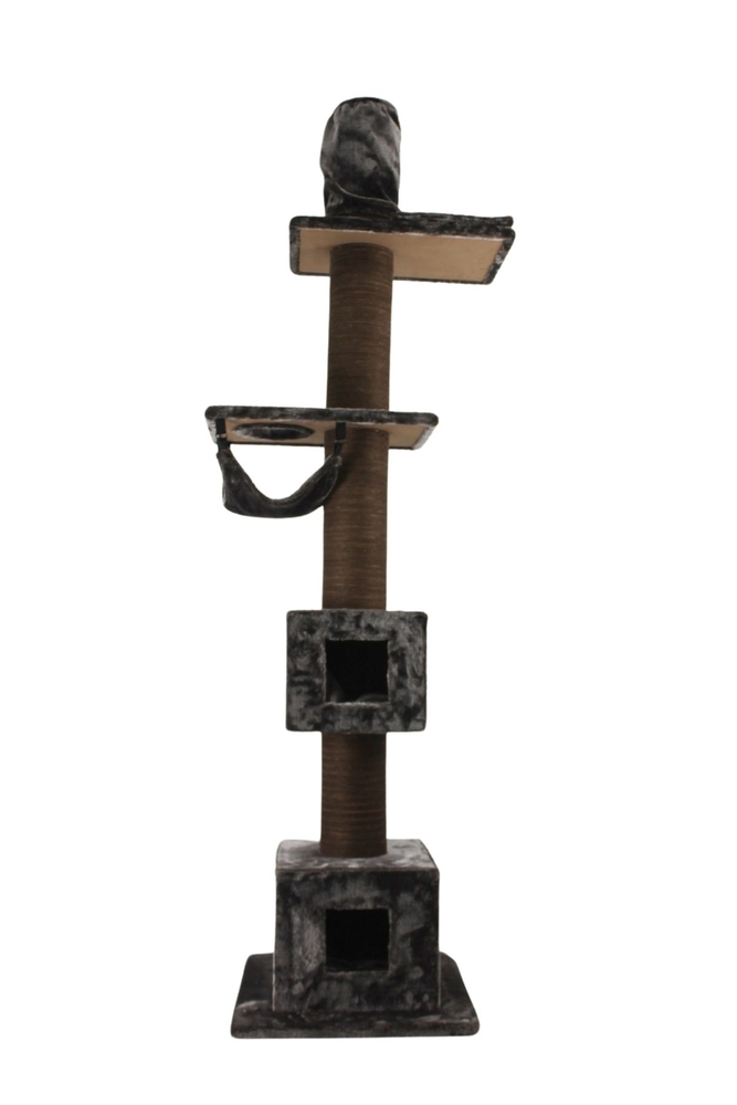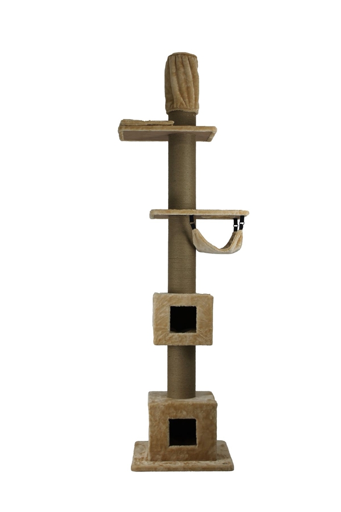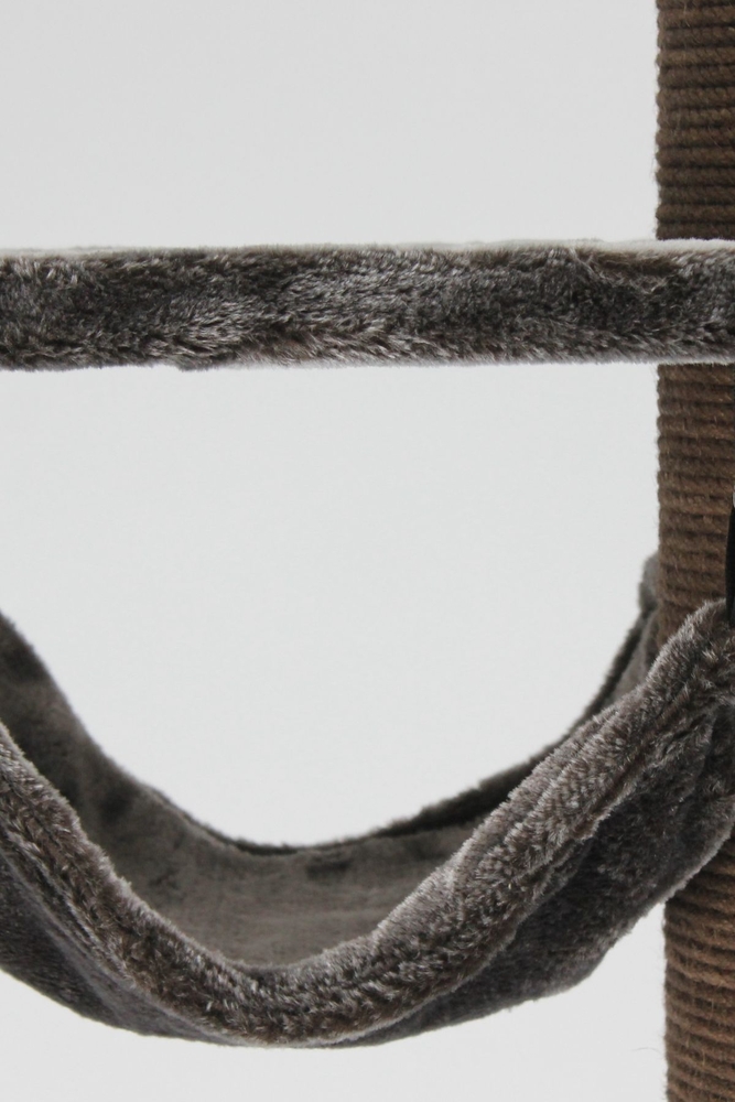 - Tırmalama direklerinde kullanılan 6mm doğal jüt halat, masuralara her noktadan yapıştırılarak sağlamlık en üst düzeye çıkarılmıştır. Tırmalama direklerinin alt ve üst kapaklarında MDF kullanılmaktadır.
