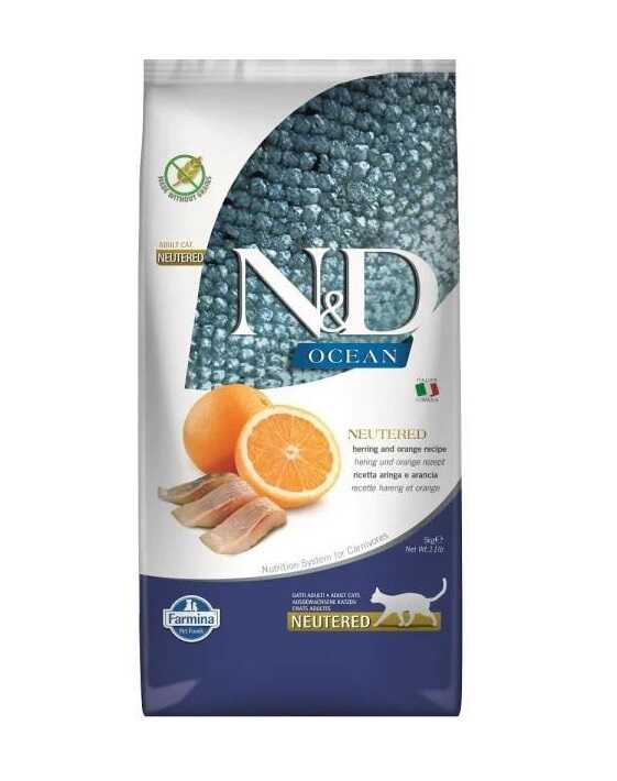 N&D Ocean Tahılsız Ringa Balıklı ve Portakallı Kısırlaştırılmış Kedi Maması 5kg