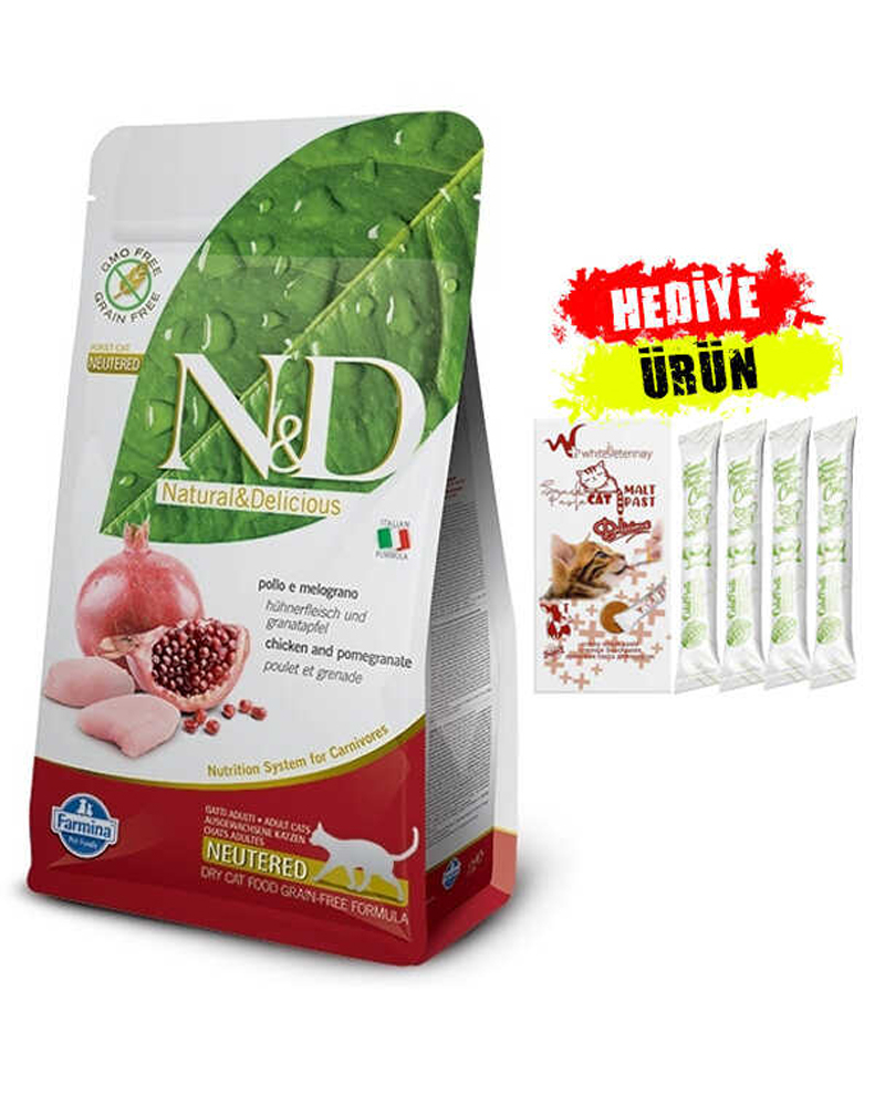 N&D Tavuklu Narlı Tahılsız Kısırlaştırılmış Kedi Maması 1,5 Kg