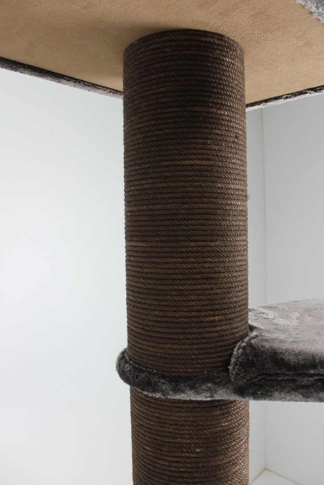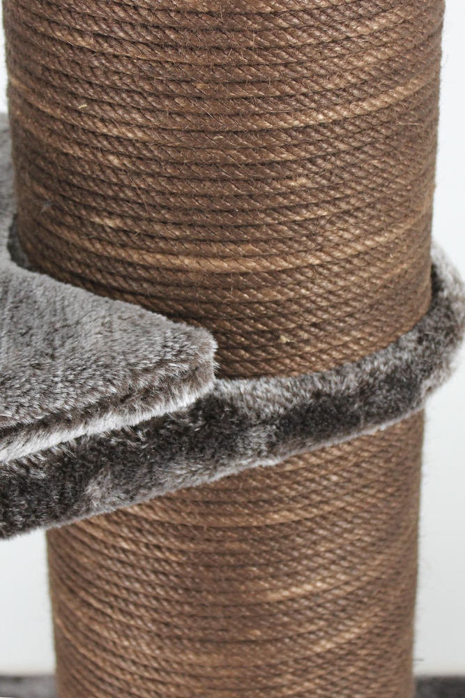 - Tırmalama direklerinde kullanılan 6mm doğal jüt halat, masuralara her noktadan yapıştırılarak sağlamlık en üst düzeye çıkarılmıştır. Tırmalama direklerinin alt ve üst kapaklarında MDF kullanılmaktadır.