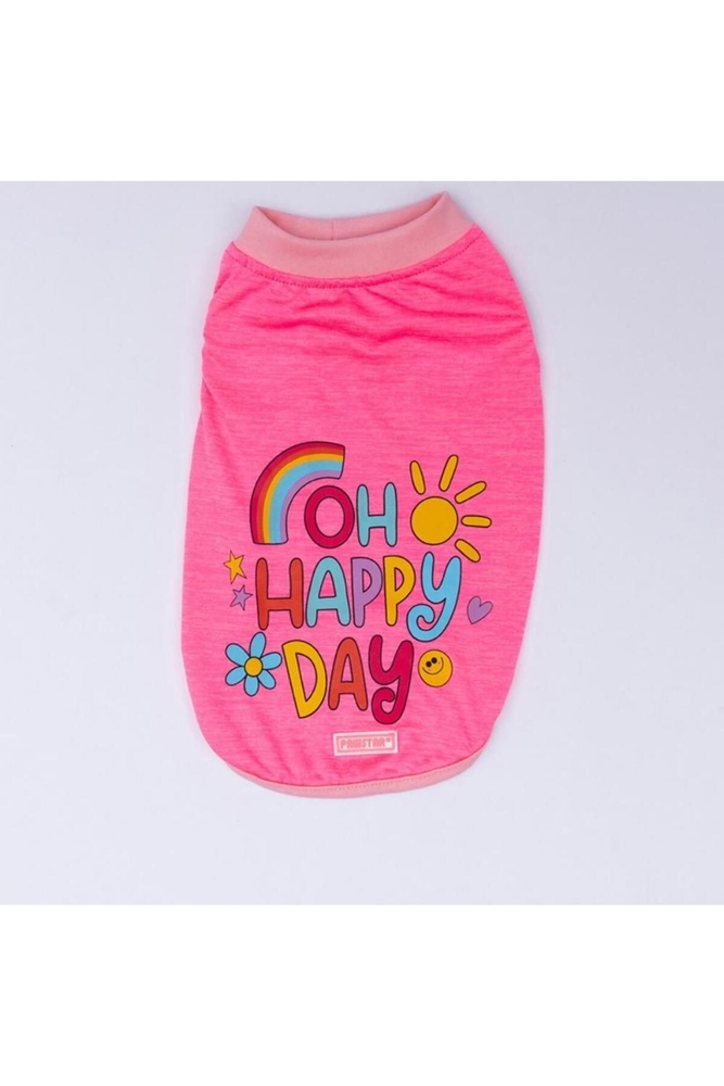 Pawstar Neon Pembe Happy Day Kedi Köpek Tişörtü - Kedi Köpek Kıyafeti 2XL