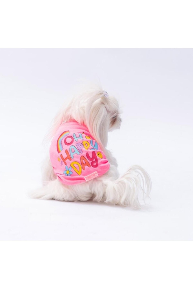 Pawstar Neon Pembe Happy Day Kedi Köpek Tişörtü - Kedi Köpek Kıyafeti L