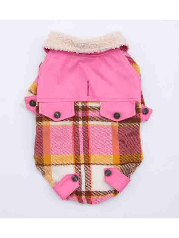 Pawstar Pembe Plaid e Pelle Kedi Köpek Ceketi Kedi Köpek Kıyafeti Kedi Köpek Elbisesi - M