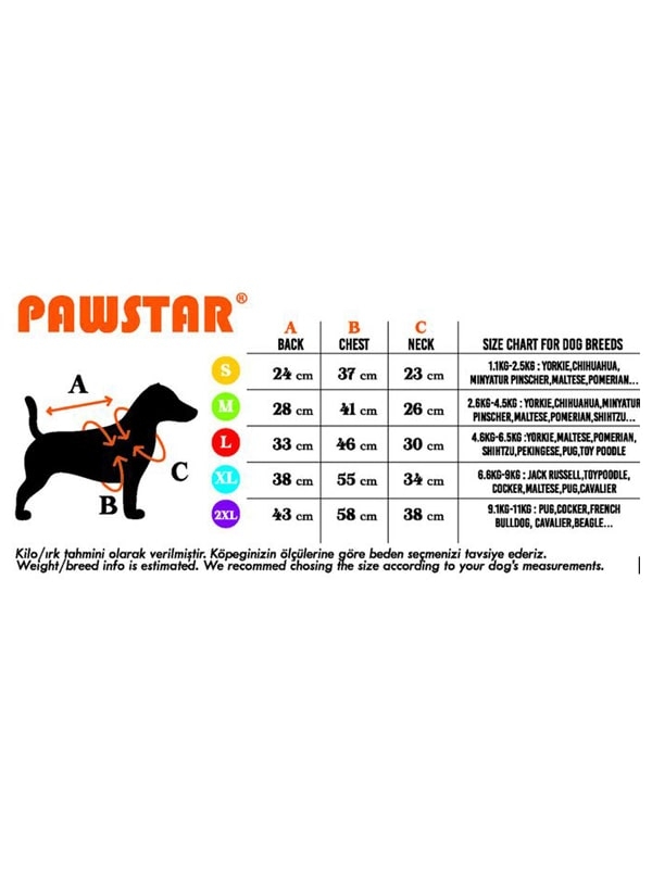 Kıyafet siparişlerinizde evcilinizin boyun ve göğüs kısmını bir ip yardımı ile ölçerek, ürün beden tablosundaki ölçülere göre doğru seçimi yapabilirsiniz. Ölçüler modellerde farklılık gösterebilir. Ürünlerde bulunan beden tablolarını baz alınız.