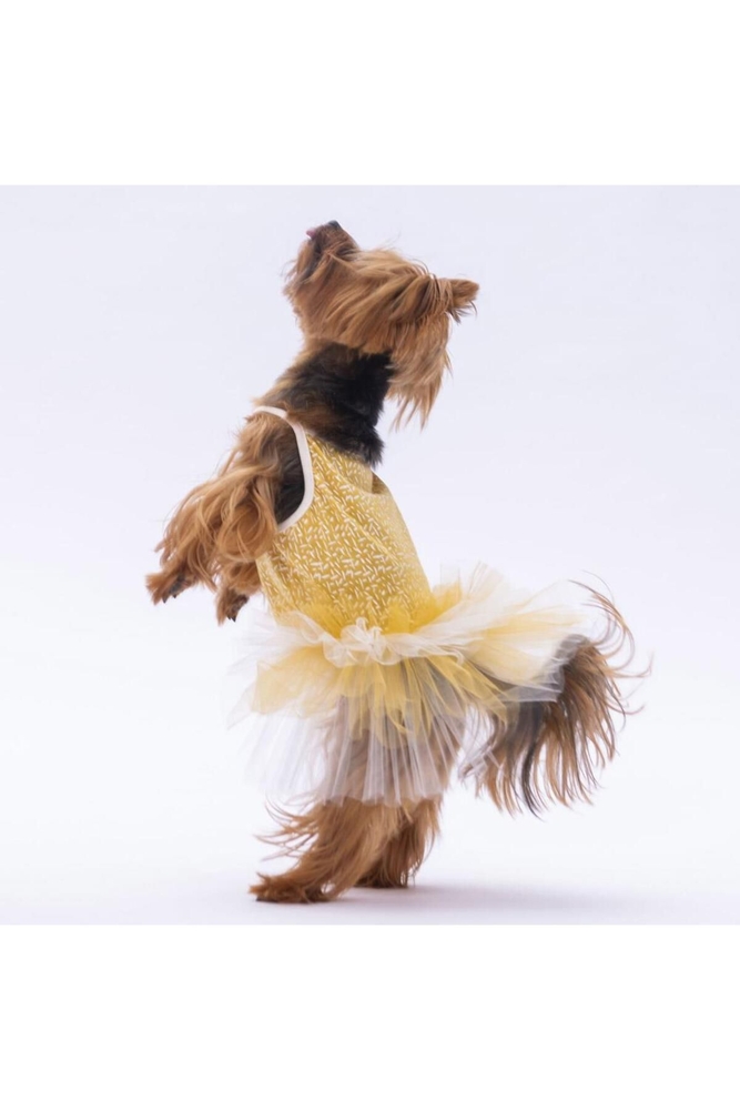 Pawstar Sarı Polka-Dot Kedi Köpek Elbisesi - Kedi Köpek Kıyafeti XL
