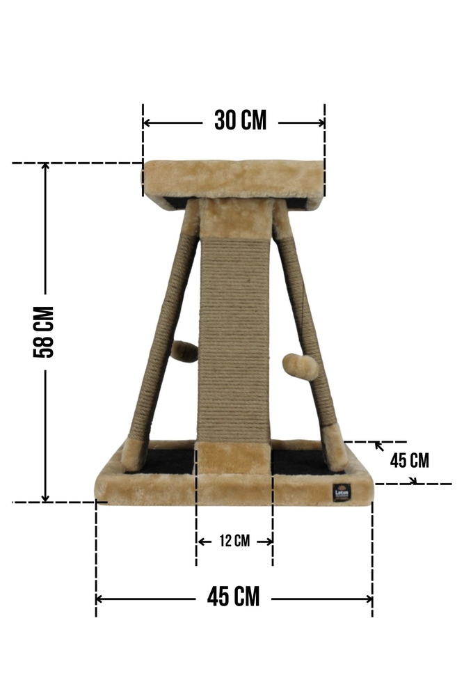 - Tırmalama direklerinde kullanılan 6mm doğal jüt halat, masuralara her noktadan yapıştırılarak sağlamlık en üst düzeye çıkarılmıştır. Tırmalama direklerinin alt ve üst kapaklarında MDF kullanılmaktadır.