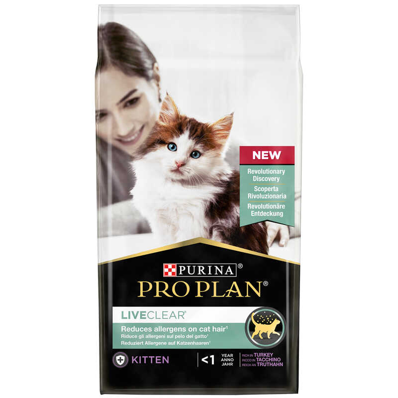 PRO PLAN® LIVECLEAR® Kitten, Zengin Hindi Etli, içeriğindeki yüksek Protein, C ve E Vitaminleri sayesinde sağlıklı bağışıklık sistemini destekler. Sağlıklı sindirim ve bağışıklık sistemini, göz ve beyin sağlığını desteklediği kanıtlanmış çığır açan kedi mamasıdır.