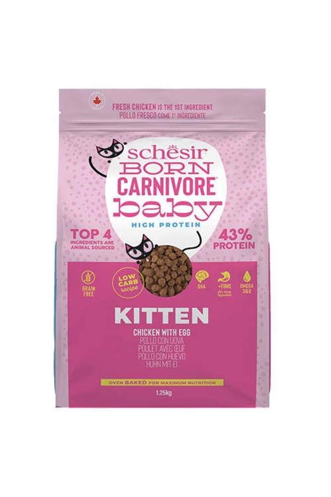 Schesir Born Carnivore Baby Tavuklu ve Yumurtalı Tahılsız Yavru Kedi Maması 1,25 Kg