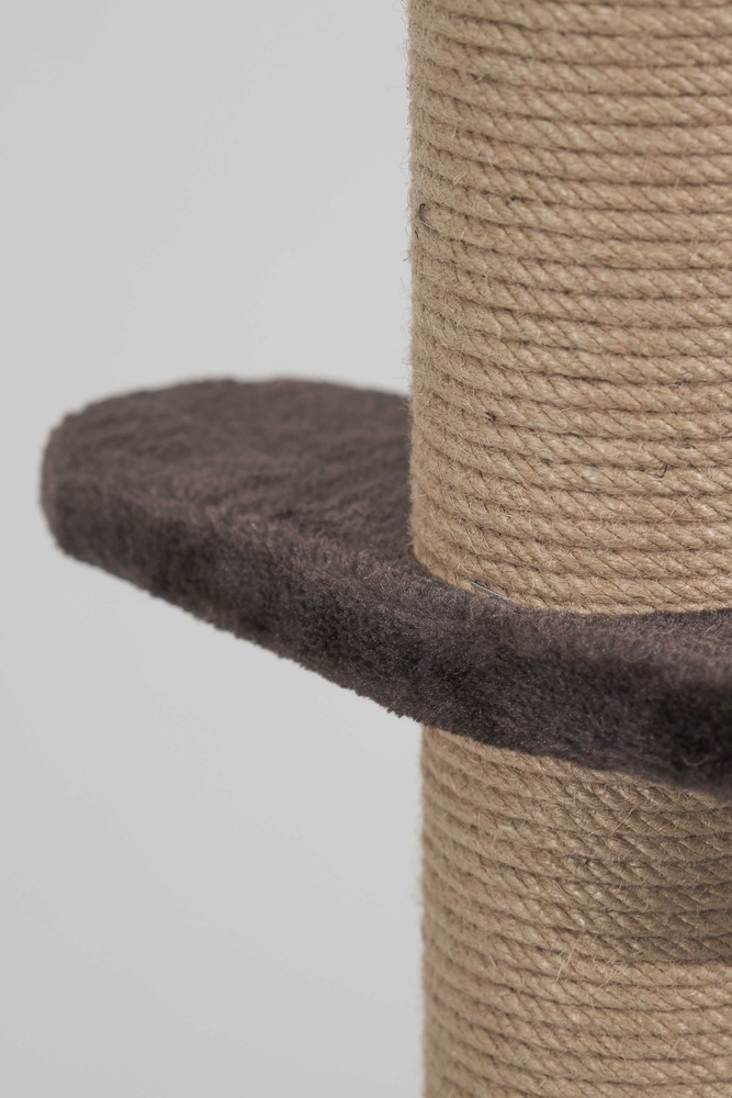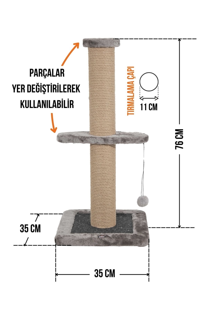 - Tırmalama direklerinde kullanılan 6mm doğal jüt halat, masuralara her noktadan yapıştırılarak sağlamlık en üst düzeye çıkarılmıştır. Tırmalama direklerinin alt ve üst kapaklarında MDF kullanılmaktadır.