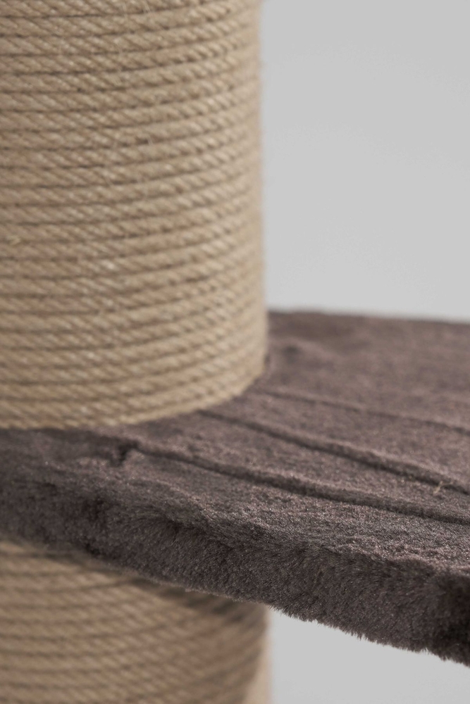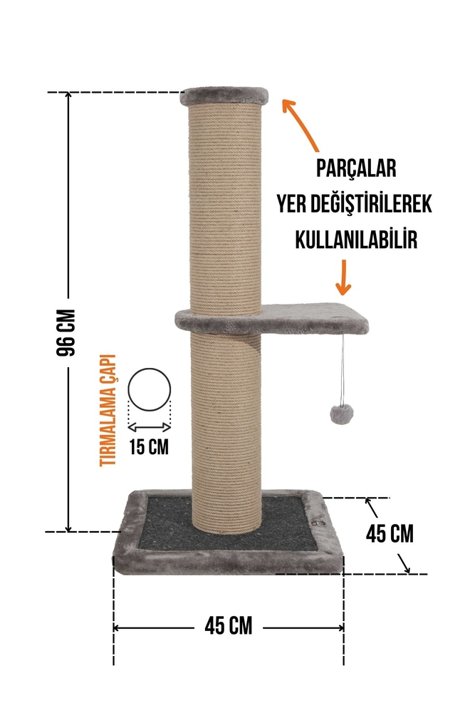 - Tırmalama direklerinde kullanılan 6mm doğal jüt halat, masuralara her noktadan yapıştırılarak sağlamlık en üst düzeye çıkarılmıştır. Tırmalama direklerinin alt ve üst kapaklarında MDF kullanılmaktadır.