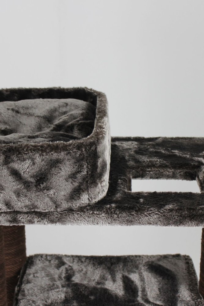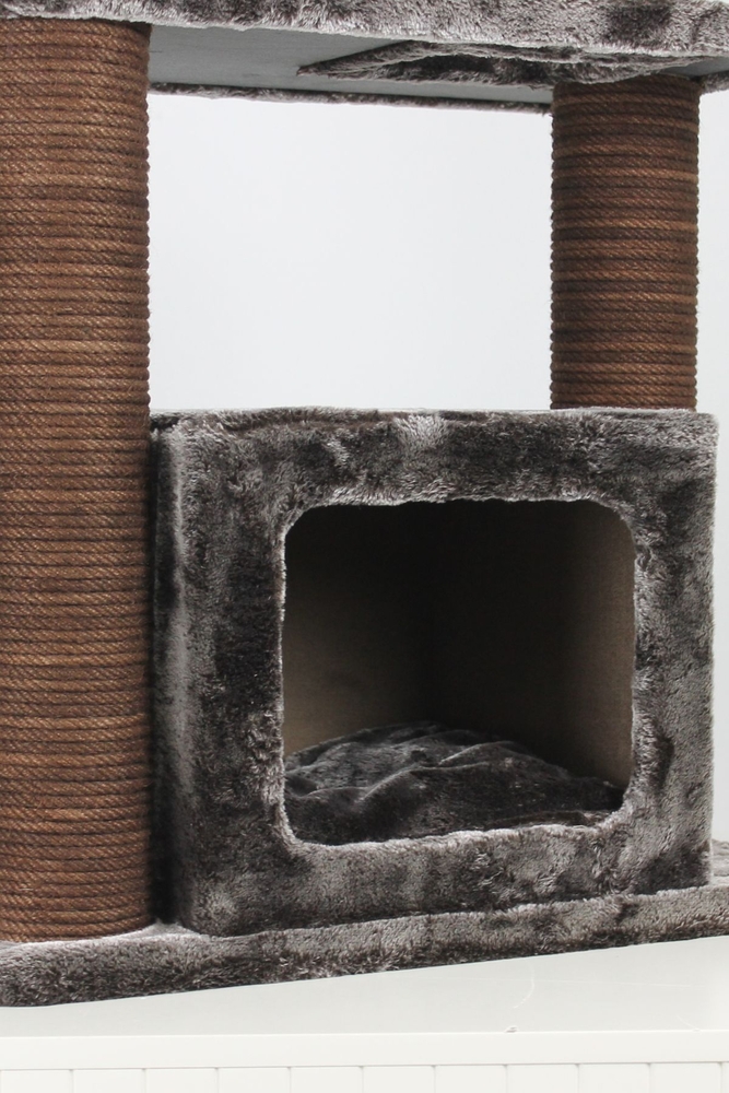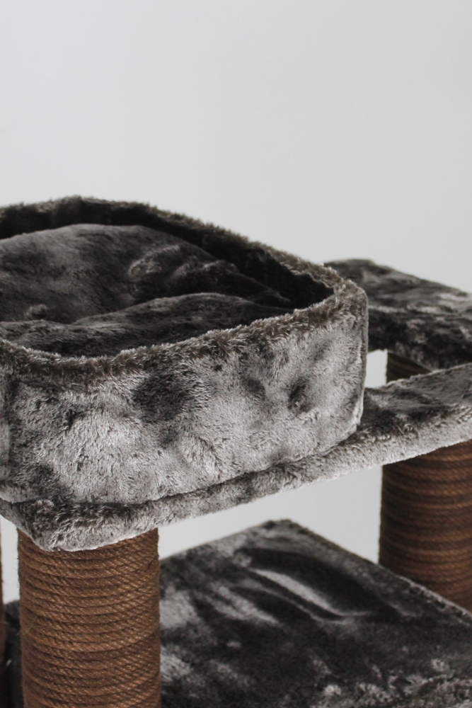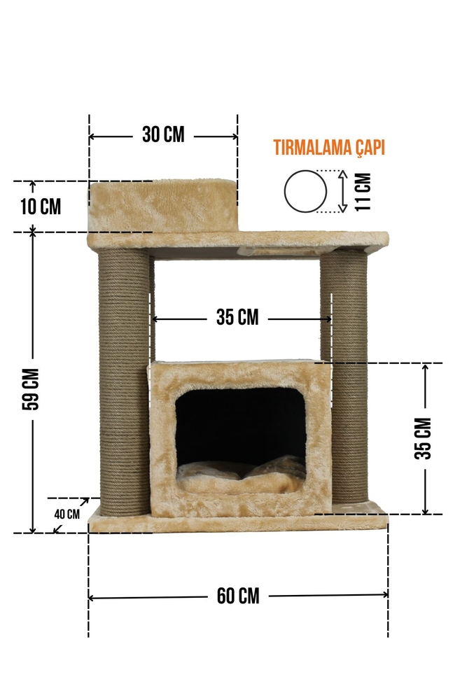 - Tırmalama direklerinde kullanılan 6mm doğal jüt halat, masuralara her noktadan yapıştırılarak sağlamlık en üst düzeye çıkarılmıştır. Tırmalama direklerinin alt ve üst kapaklarında MDF kullanılmaktadır.