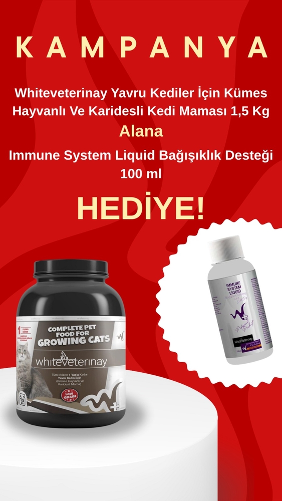 Whiteveterinay Az Tahıllı Yavru Kediler İçin Kümes Hayvanlı Ve Karidesli Kedi Maması 1,5 Kg (Immune Likit Hediyeli )