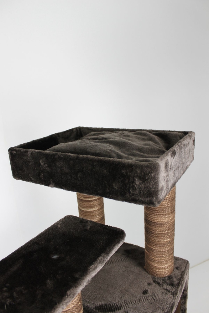 - Tırmalama direklerinde kullanılan 6mm doğal jüt halat, masuralara her noktadan yapıştırılarak sağlamlık en üst düzeye çıkarılmıştır. Tırmalama direklerinin alt ve üst kapaklarında MDF kullanılmaktadır.